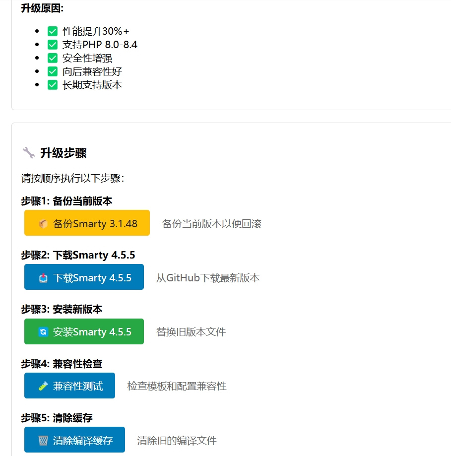 95分类目录Smarty 3.1.48 升级到Smarty 4.5.5,kindeditor更新到4.1.2,PHP版本从原有的8.2升级到8.3,本站采用自制Smarty模板引擎升级工具,进行了对Smarty全自动更新升级,提升整体网站性能,网站打开速度明显提升不少。