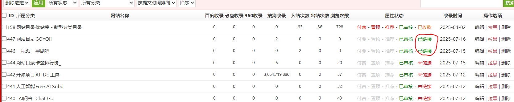 关于友链本站获取已审核资格撤销友链的后果,在这里我想说的是,如果你撤链请告知我,我这边下收录,如果在没告诉我的情况下你把友链撤了,那么我将拉黑你,别以为我不知道,后台有友链检测的,自动检测的